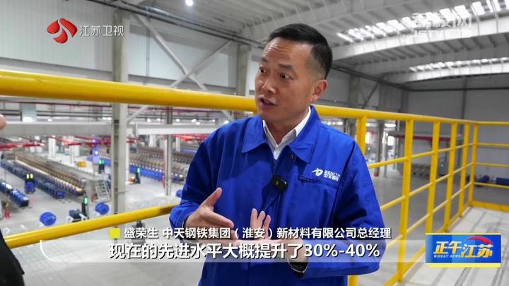中天钢铁集团(淮安)新材料有限公司总经理盛荣生说,要给行业里添加新质生产力,而不是说简单地添加产能。公司的亩均产出相对于这个行业现在先进水平,提升了30%-40%,能耗降低了10%,生产过程中间使用到的盐酸,没有一滴是拉出工厂去处理的,而是100%循环再利用。公司有信心在行业里面全球20年不落后。