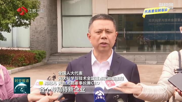 全国人大代表、江苏台主持人张晓北:“今年全国两会上,新质生产力成为热词。全国人大代表高纪凡所在光伏行业是新质生产力培育的重要领域。如何写好科技赋能和产业创新这篇大文章?让我们一起去看看高纪凡代表是怎么做的。”