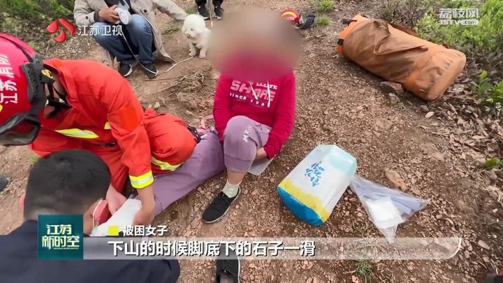 被困女子说:“我们慢慢爬,爬到这个地方,我们就说太险了下山吧。下山的时候,脚底下的石子一滑,右腿就扭一下,就摔了。我鞋子的鞋底可能也太滑了。”