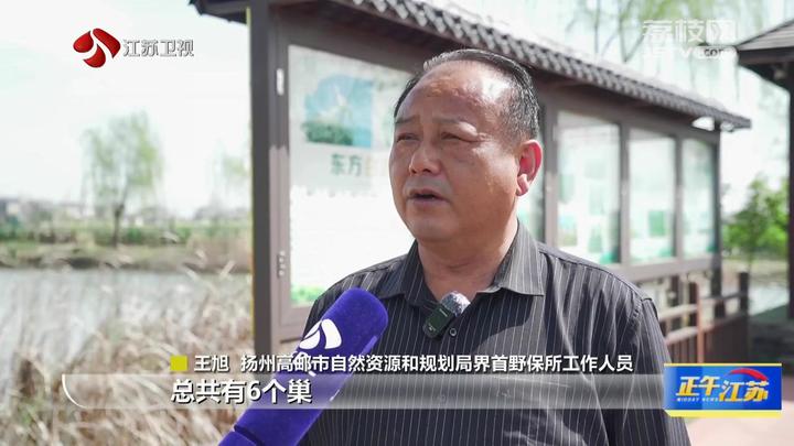 扬州高邮市自然资源和规划局界首野保所工作人员王旭说:“今年,我们界首范围内总共有6个巢,一个巢里面产的小鸟最多是5个,少的是2个。”