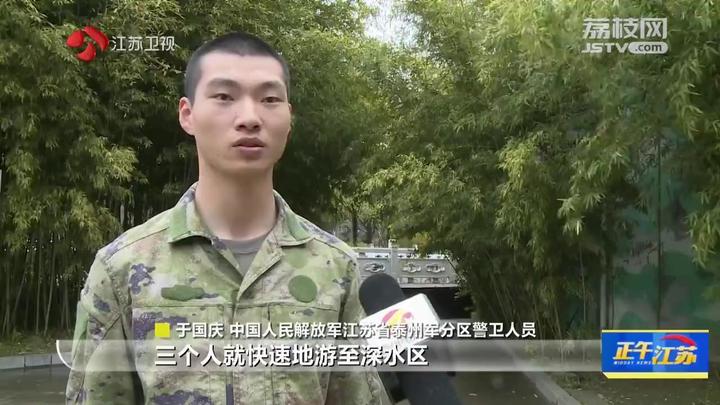 中国人民解放军江苏省泰州军分区警卫人员于国庆回忆道,落水少年在水里一上一下,感觉情况非常危急,当时没有多想就快速地游至深水区,将他先拖离深水区。
