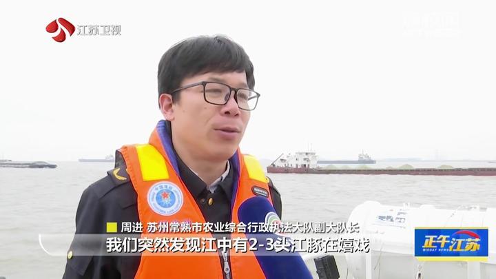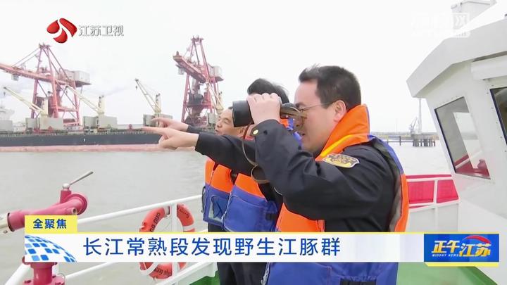 近日,苏州常熟市相关执法人员在例行长江禁渔执法巡航中发现成群江豚。这是十年来长江常熟段首次观测到江豚成群活动现象。