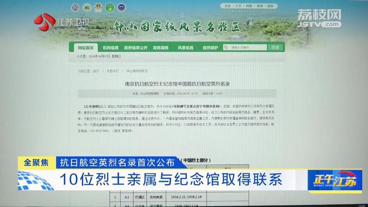 前段时间,《正午江苏》报道了南京抗日航空烈士纪念馆公布1468名中国籍抗日航空英烈名录的消息。此次公布引起高度关注,截至目前,已有10名烈士亲属与纪念馆取得联系。