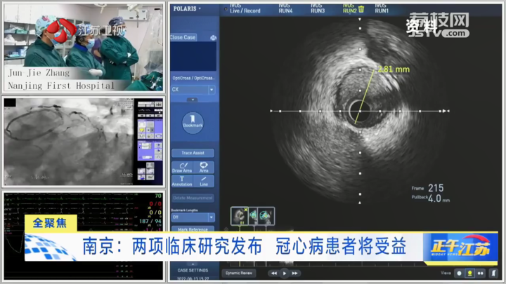 南京市第一医院心血管内科导管室主任李小波说:“血管内超声是一个腔内影像,有一个超声导管直接进入了血管腔内,从里面就可以清晰地观察到斑块,观察到正常的血管,我们就可以选择更好的支架落点,选择更合适的支架长度来释放到血管里面去。最终的成功也要按照血管内超声的标准,做到了更精准的治疗,病人的预后也会得到更好的改善。”