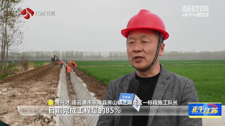 连云港市东海县房山镇芝麻片区一标段施工队长贾兴才说:“目前完成工程量的85%,正在加快进度,确保在4月底竣工,不耽误农时。”