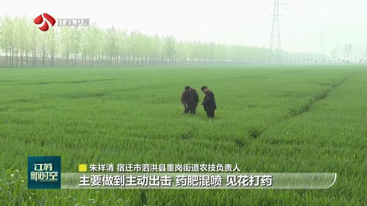宿迁市泗洪县重岗街道农技负责人朱祥清说,在防治上面要做到主动出击、药肥混喷、见花打药,亩亩块块防治两次,提高防治效果,确保今年的小麦丰产丰收。