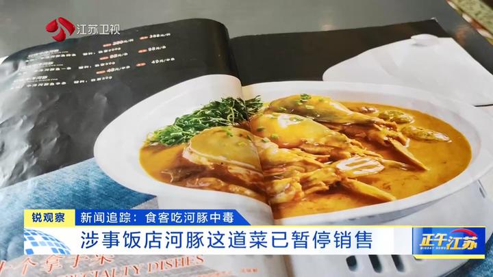 根据知情人提供的线索,记者找到了位于南京市雨花台区的这家饭店。记者到访时,该店仍在正常营业。饭店菜单上,红烧中洋河豚放在彩图首页,作为十大拿手菜被推荐。不过,当我们以顾客身份想要点这道菜品时,却被告知菜暂时不做了。