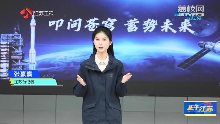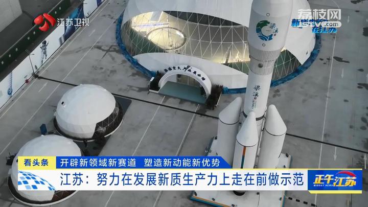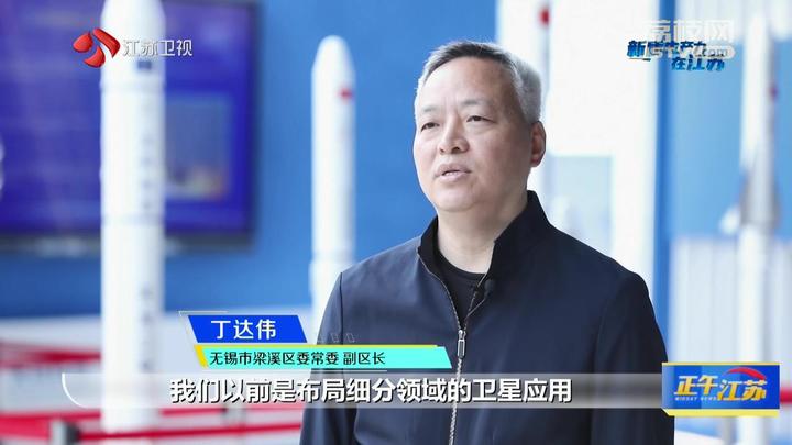 江苏台记者张赢赢:“星光点点、浩瀚苍穹。人类从未停止过对宇宙的探索。从商业火箭到卫星制造,再到各类配套组成部分,围绕‘箭、船、星’全产业链,江苏的空天产业创新高地正加速成势。”