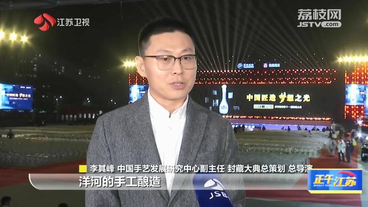 中国手艺发展研究中心副主任、封藏大典总策划、总导演李其峰说:“洋河的手工酿造,其实它的班组和名字就统一了。手工班是它的一个班组,都是20年以上的老匠人才能进入到这个班组,所以它的独到之处就是全流程137道工序全部由人来完成。”