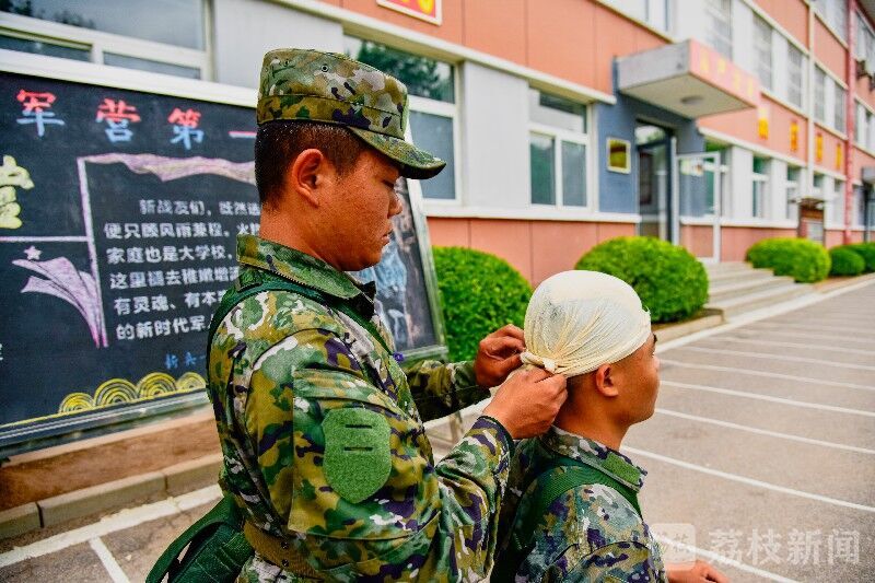 训练现场,新兵团军医为官兵讲解基本理论知识,并对三角巾帽式包扎、卷式夹板固定、心肺复苏胸外按压等课目进行了现场操作演示,现场官兵认真听讲、观摩动作要领。