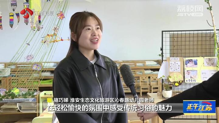 淮安生态文化旅游区沁春路幼儿园老师骆巧娣说,孩子们通过绘蛋、挂蛋、斗蛋的一系列活动,在轻松愉快的氛围中感受传统习俗的魅力,传承中华传统文化。