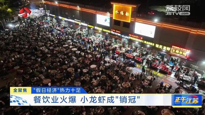 假期里,除了购物,餐饮消费也是十分火爆。正在大量上市的小龙虾成为了假日期间当之无愧的“销冠”。在淮安盱眙的小龙虾夜市上,数千平米的露天广场上座无虚席,热闹非凡,来自五湖四海的游客们围坐在桌前,尅龙虾,喝啤酒,大快朵颐。