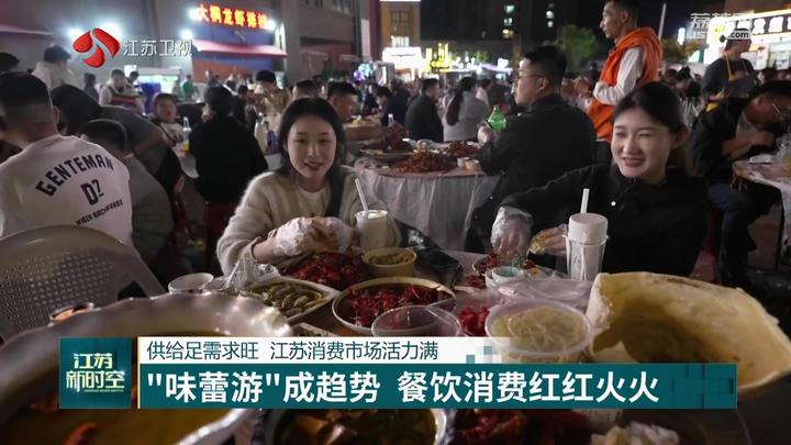 这个假期,“味蕾游”成为消费新趋势,带动全省各地餐饮消费火热。徐州推出22条定制旅游美食专线,串联起徐州名胜景区、繁华商圈、小吃夜市,并针对大学生等旅游“特种兵”们,开通了“特种兵”美食专线,将平价网红美食串联成线,带来别具一格的美食之旅。 号称“餐桌流量王”的小龙虾也提前迎来产销旺季,盱眙大桐农贸市场作为当地最有名的小龙虾夜市,数千平米的露天广场上座无虚席,来自五湖四海的游客们纷至沓来,以虾会友,掀起消费热潮。