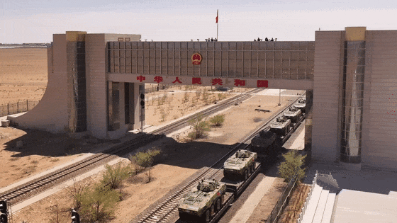 换乘蒙方列车后驶出国门