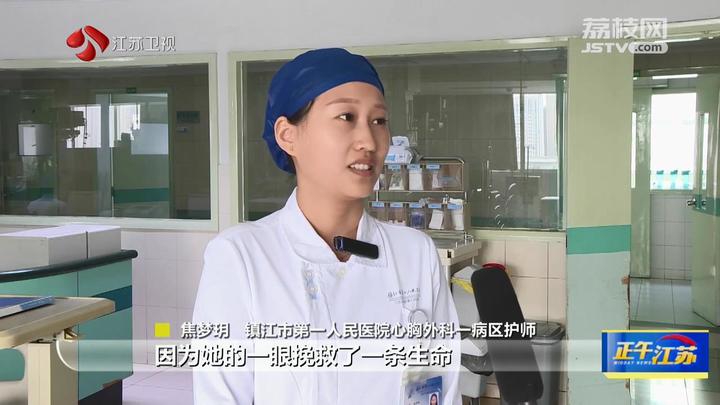 镇江市第一人民医院心胸外科一病区护师焦梦玥说:“当时,我刚把这个病人扶下床的时候,发现病人出现了气喘和胸闷的情况。当时我也没有在意,但是护士长立即将病人扶上床给予他心电监护、吸氧。经过救治,病人转危为安。护士长这个举动让我终身难忘,因为她的一眼挽救了一条生命。”