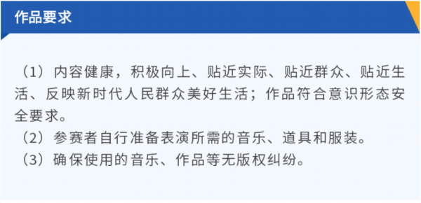 据介绍,线下海选参赛要求为:参赛选手不限年龄、不分地域,凡具备一定唱歌、跳舞、创意表演等才艺的人员均可报名参加。