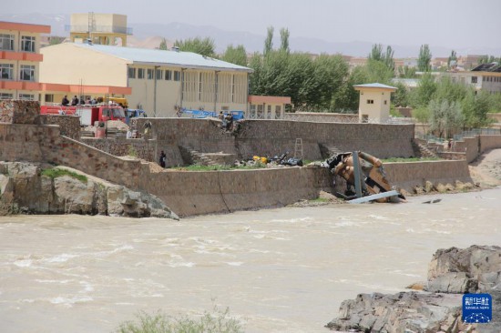这是5月15日在阿富汗西部古尔省首府菲罗兹山拍摄的米-17直升机紧急迫降现场。新华社发(巴克塔什摄)
