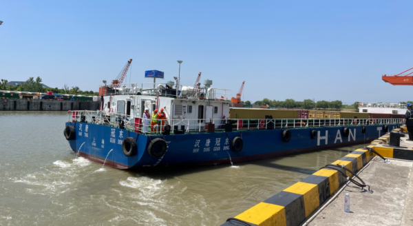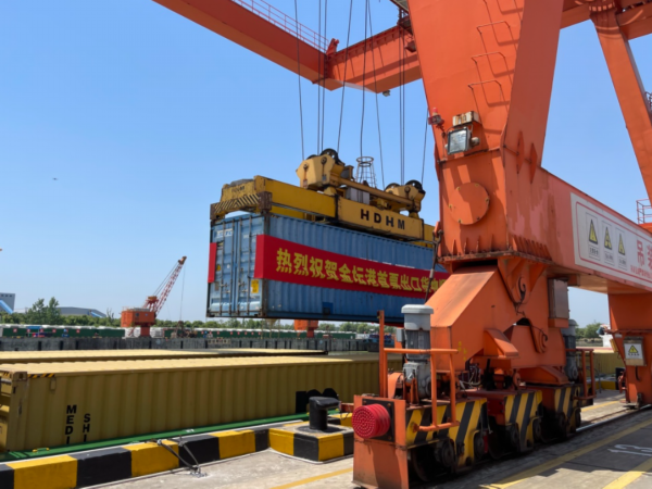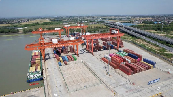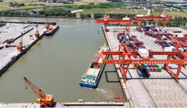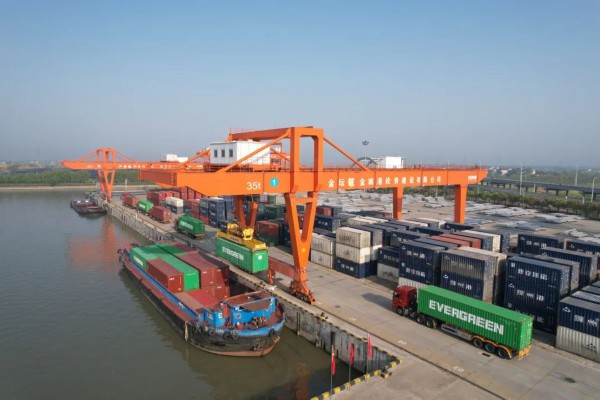 近年来,常州陆续推进金坛港和东港内陆集装箱码头项目落地运营、常金内河港直达联通上海深水海港等工作开展,开通常州-宁波舟山港出口新能源汽车海铁联运集装箱专列。2023年,常州内河集装箱吞吐量达7.8万标箱,同比增长195.9%。