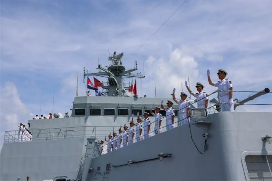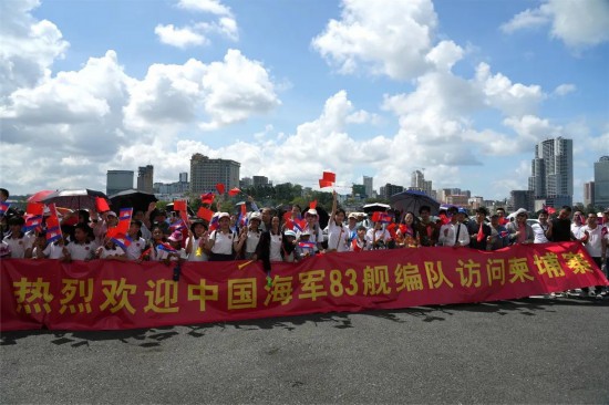83舰编队在热烈的欢迎声中