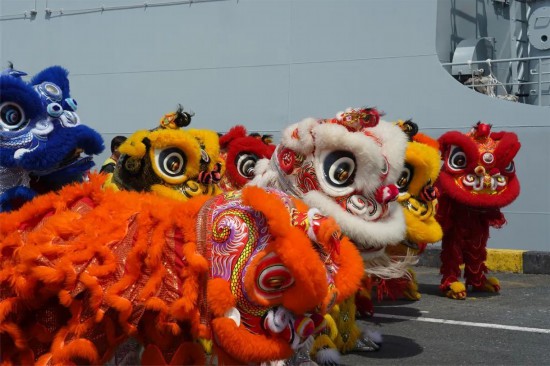 ▲当地舞狮队欢迎83舰编队官兵。孙铭泽