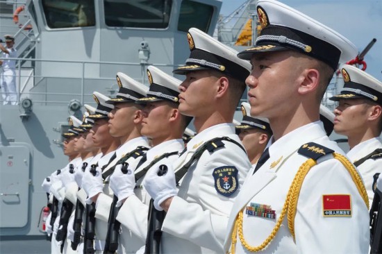 ▲仪仗队在甲板整齐列队。孙铭泽 摄