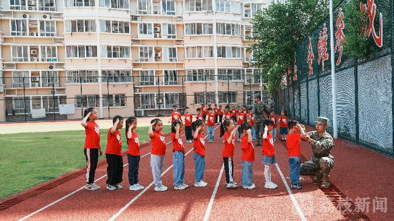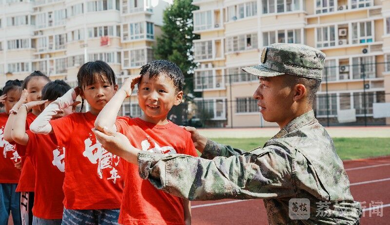 “叔叔,你看我的敬礼标准吗?”看完队列训练后,军娃们也有模有样地学着队列动作,充分地过了一把“兵”瘾。