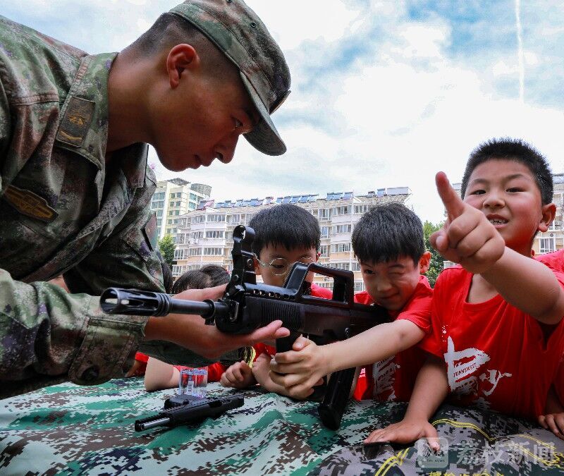 “哇塞!摸到真枪了!”装备展示区前,平时只有在电影电视里才有的枪支武器出现在了眼前,小军娃们眼神中满是期待,接过枪支有样学样地瞄准击发,不时发出惊叹的声音。