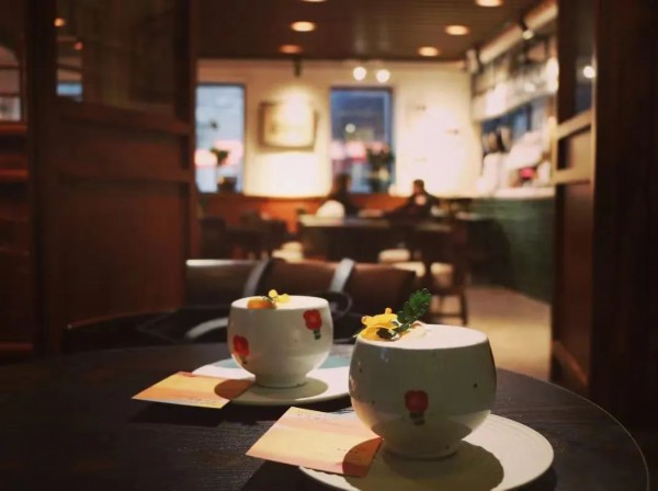 厚重的载体,对生于其中的产品提出了更高要求。点一杯“咖啡酒酿小元宵”,细看有咖啡冻漂在米浆打出的泡沫中,酒酿的醇香时隐时现,糯叽叽的传统糕点橘红代替小元宵,上面点点桂花碎黄,有突遇小时候味道的惊喜,又有中国审美的意趣,一杯咖啡饮品竟演绎了一道又一道的精微。