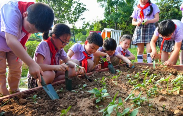 在龙王山郊野公园,“儿童友好”型社区江北新区沿江街道龙山社区打造了“一米菜园”,让孩子们在美丽的公园里体验农耕、播种希望。