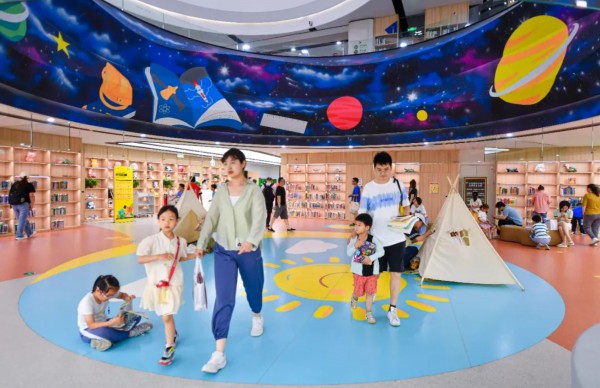 江北图书馆一层的少儿阅读空间有可借阅图书近2万册,打造儿童“爱阅之城”。