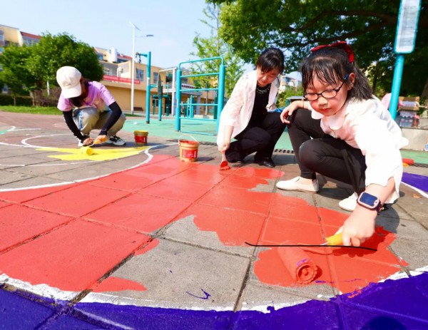 雨花台区雨花街道丁墙社区开展“彩虹花道儿童绘活动”,让孩子们感受到“社区小主人”的尊重感和责任感。