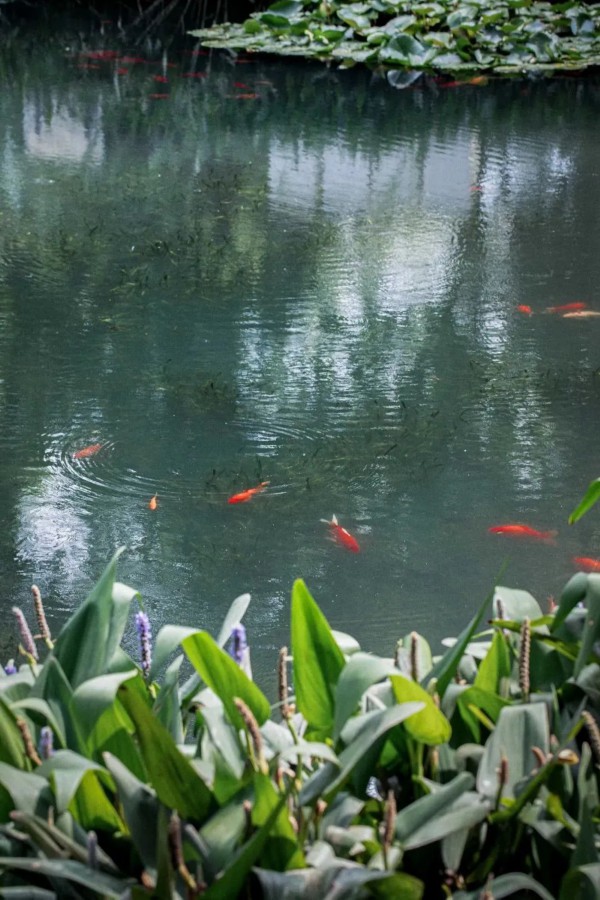 湖中有很多红色的小鱼游来游去