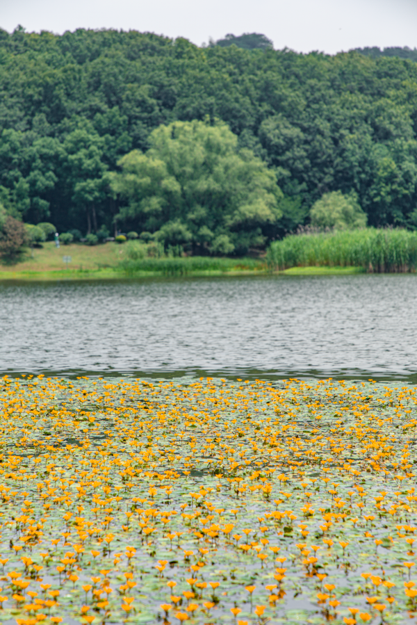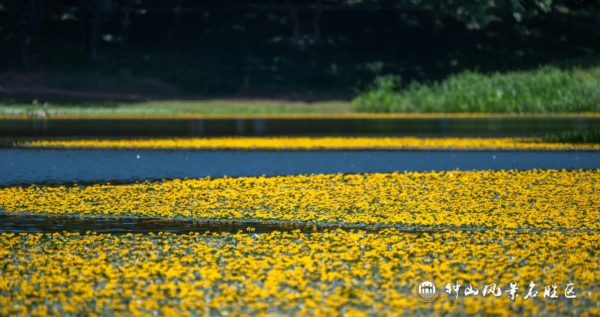 如繁星般点缀在湖面的嫩黄小花盛开
