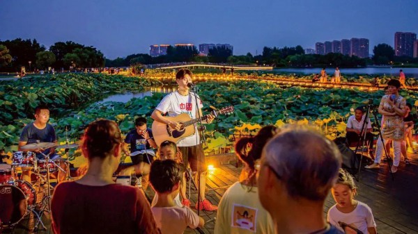 来这里散步消食的人们