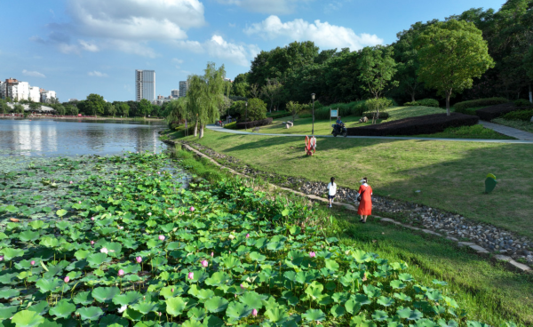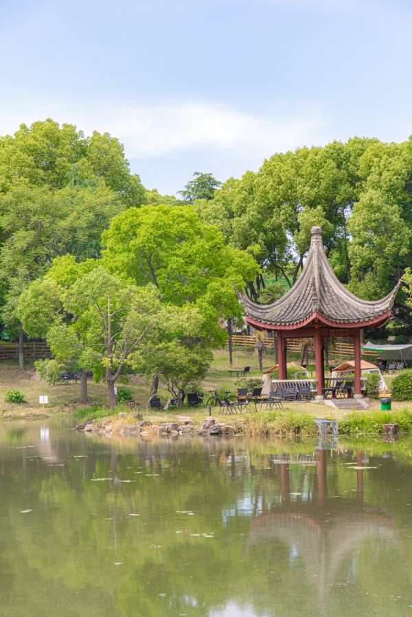 湖边设有小凉亭供人们纳凉休憩