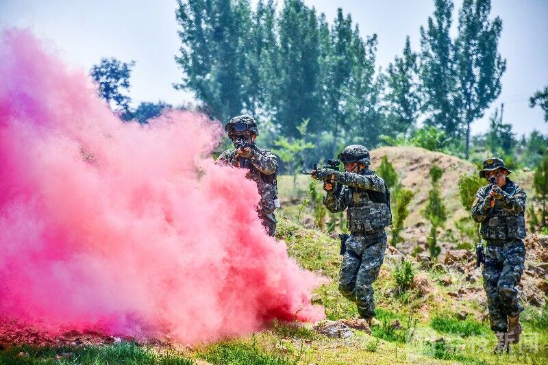 近日,武警天津总队执勤一支队野外驻训分队以山林地为背景组织开展战术演练。