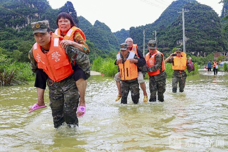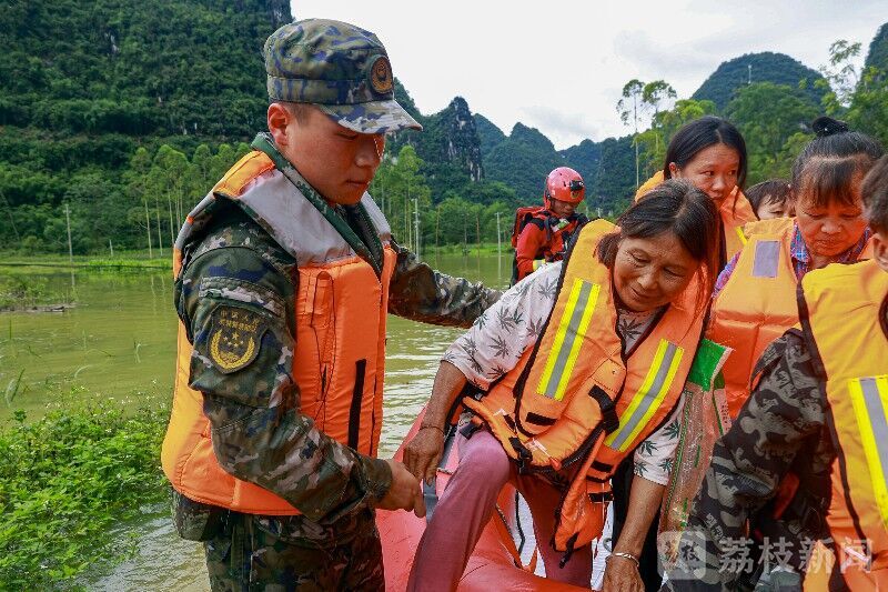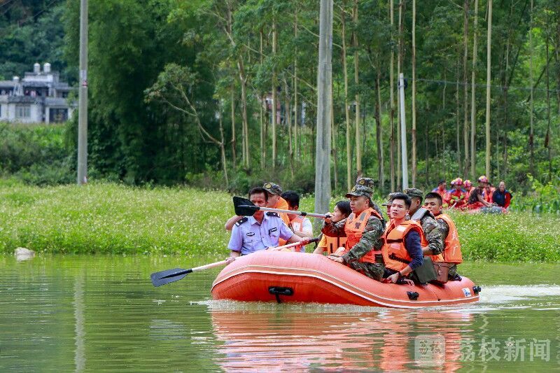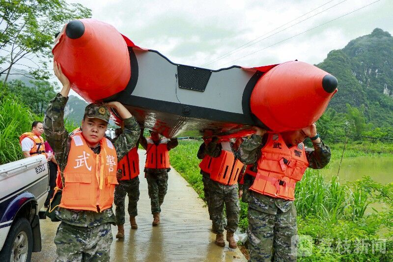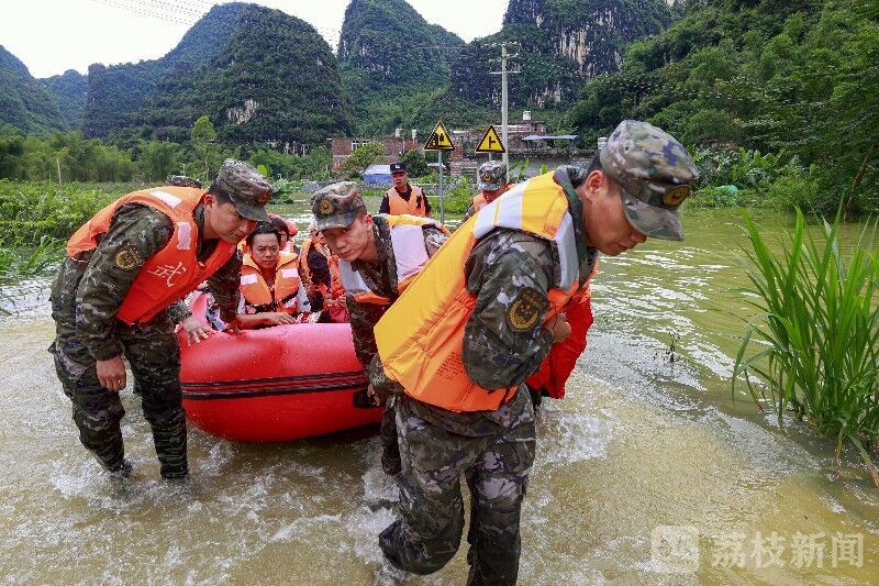 6月5日,受连续强降雨影响,广西河池市大化县贡川乡什陇村发生洪水内涝,房屋被淹、道路受阻、电力中断……情况危急,受困村民急需转移。灾情就是命令,上午8时许,武警广西总队河池支队官兵携带橡皮艇、救生衣等救援器材前往灾区进行救援。
