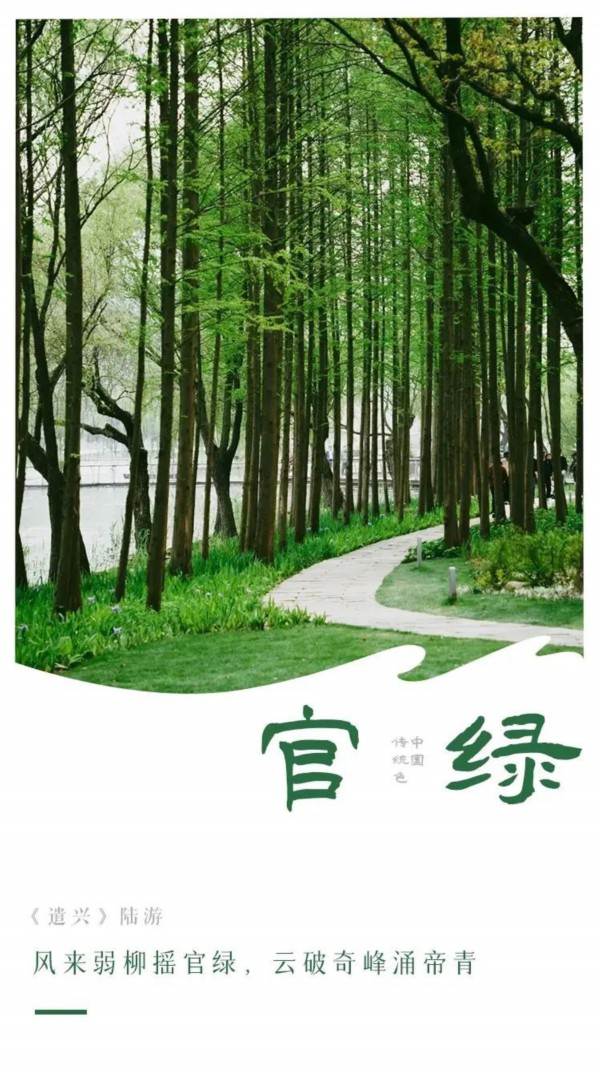 灼影、浅幽、翠苔……皆是绿却又各有不同,关于绿色,中国传统色中有很多细分类,每一种绿的名字都来源于一句美好的诗词。能道尽滨湖一夏斑斓的,正是这惊艳千年的中国色。