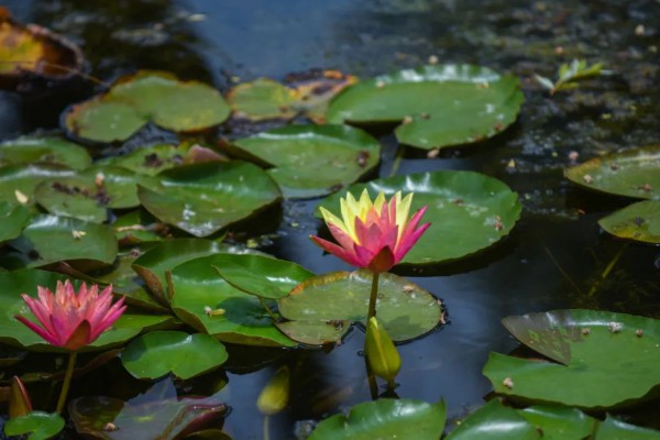 还有各色睡莲摇曳着婀娜的身姿