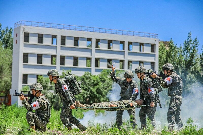 “前方发现2名‘伤员’,请立即前出救援……”近日,武警天津总队机动支队某部训练场上,一场紧张的战场救护演练正火热展开,卫生员穿行在“硝烟”中,迅速完成伤情判定、心肺复苏、急救处置等课目。