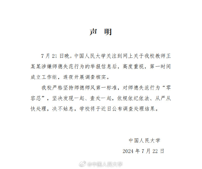 中国人民大学发布相关声明