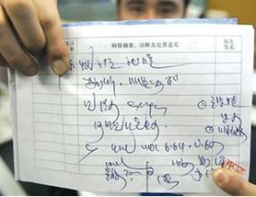 近日,网曝江苏连云港市一市民“去医院看病,发现医生写的病历和处方上的字潦草难认!”的消息再次引发网民集体吐槽。近年来,全国多地曝出医生书写病历潦草随意,甚至酷似“天书”,让病患者捉摸不透。