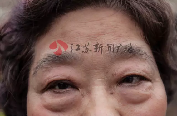 63岁患者张林珍,术前左眼近视900度、视网膜脱落,现在左眼失明,无光感。
