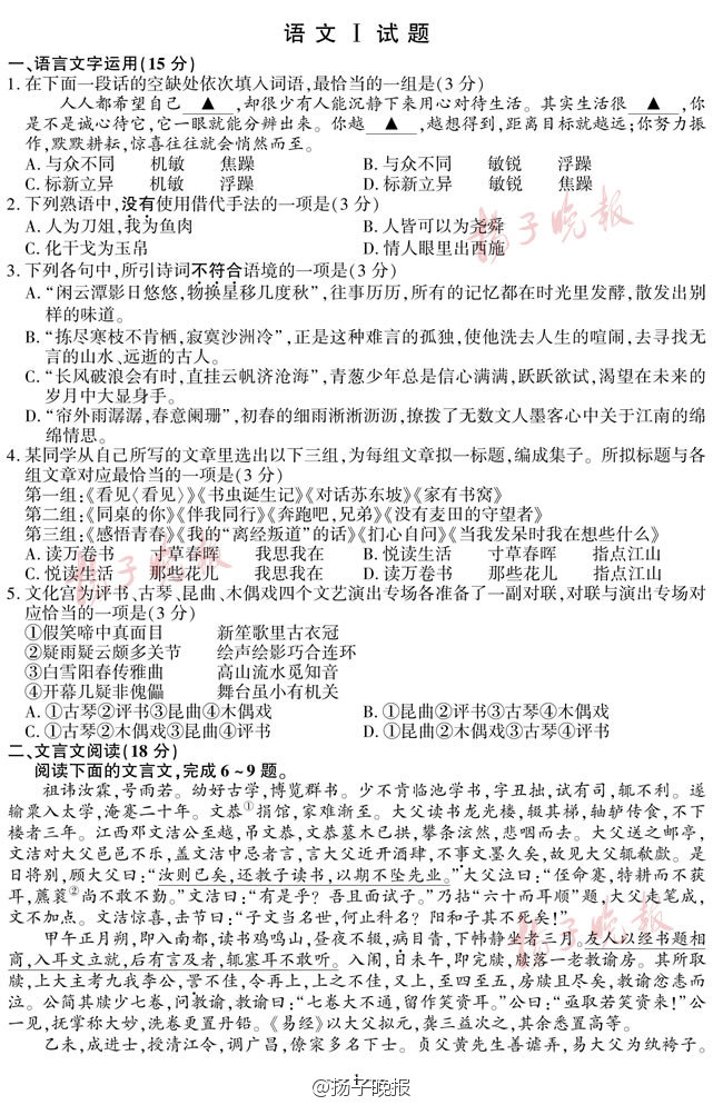【2016年江苏高考试卷及答案——语文】高考小伙伴来对答案啦!其他小伙伴也来看看,这些题你会做吗?