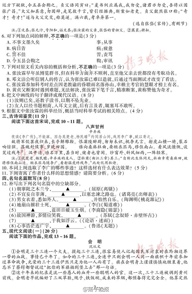 2016年江苏高考试卷及答案——语文