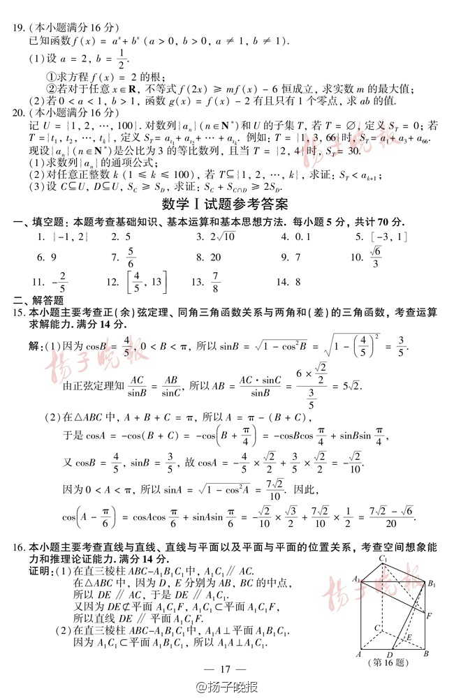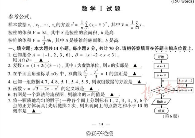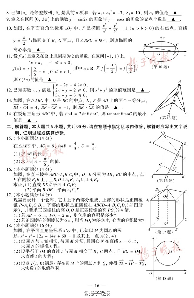 【2016年江苏高考试卷及答案——数学】高考小伙伴来对答案啦!其他小伙伴也来看看,这些题你会做吗?