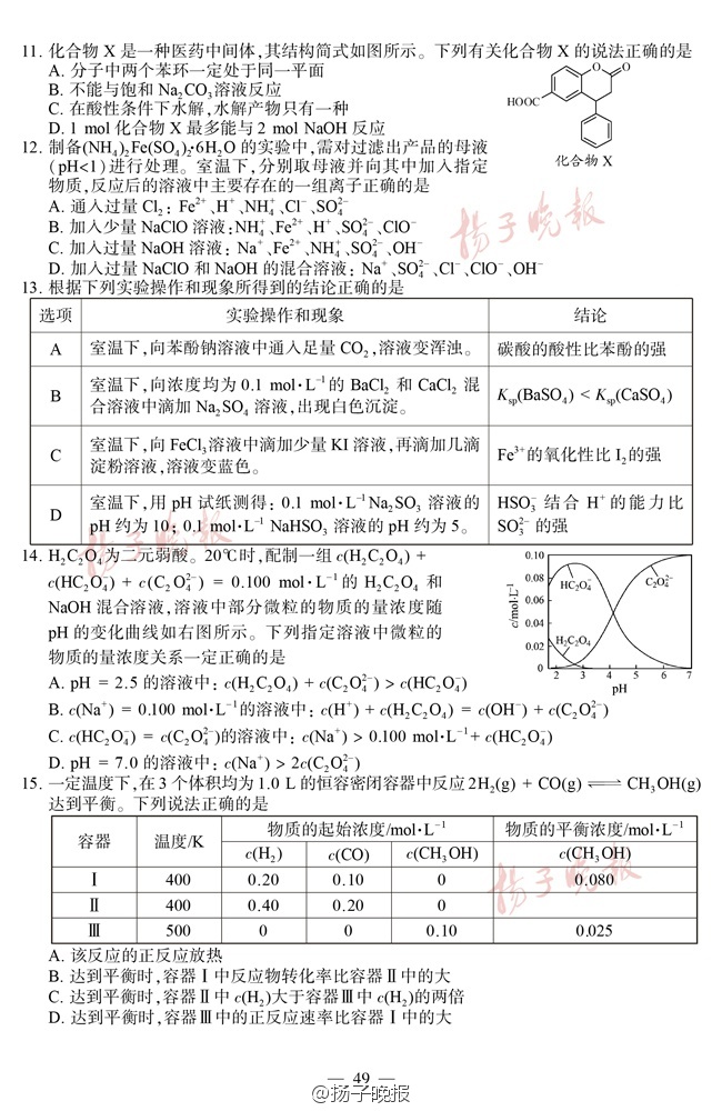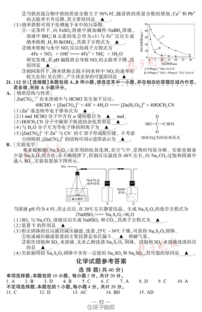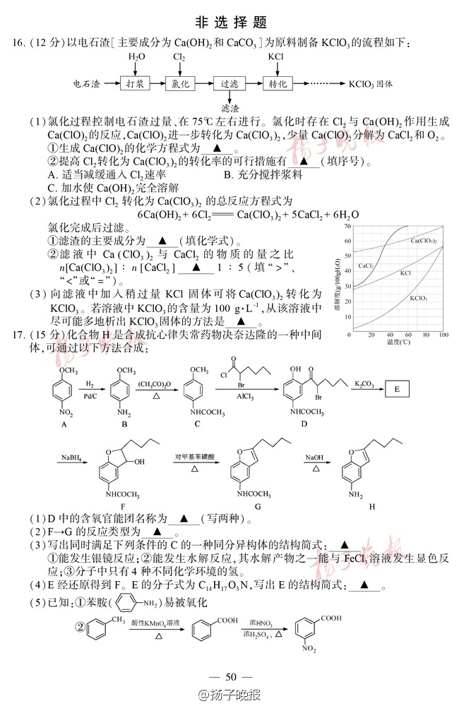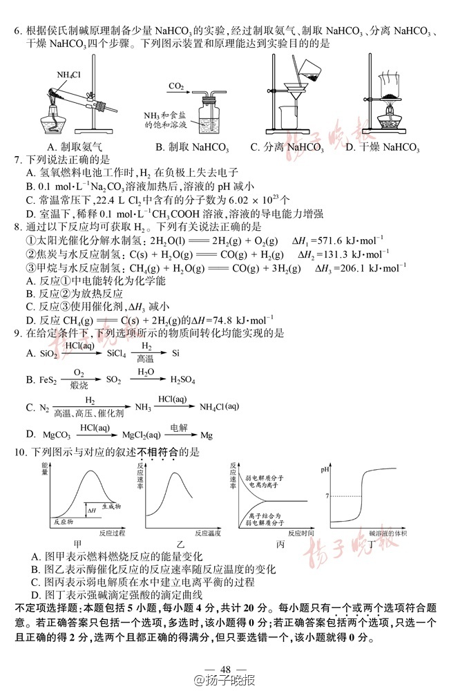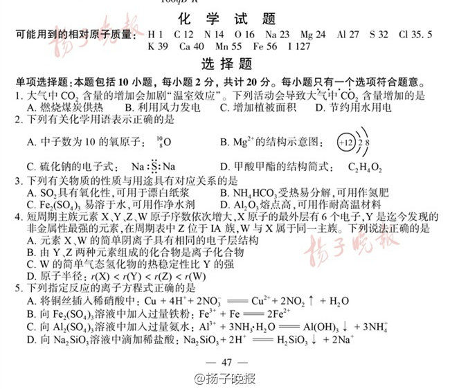2016年江苏高考试卷及答案——化学