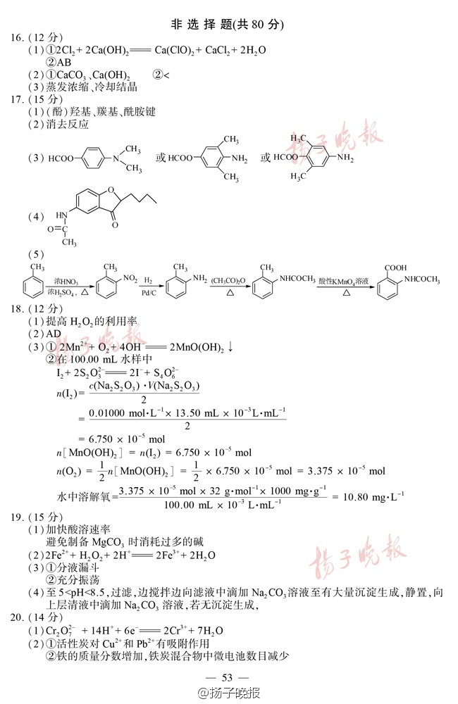 【2016年江苏高考试卷及答案——化学】高考小伙伴来对答案啦!其他小伙伴也来看看,这些题你会做吗?