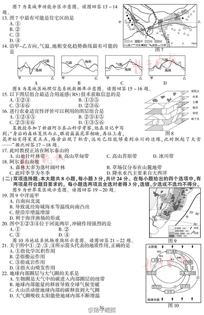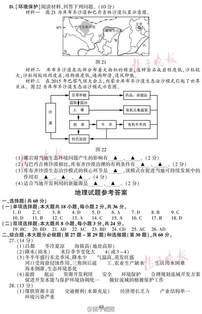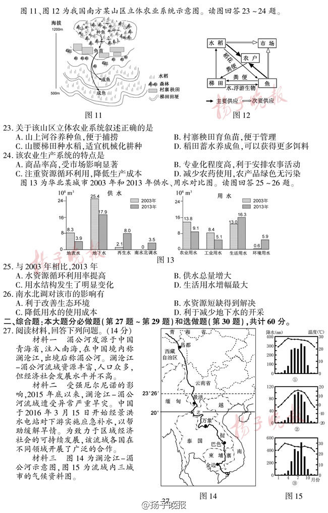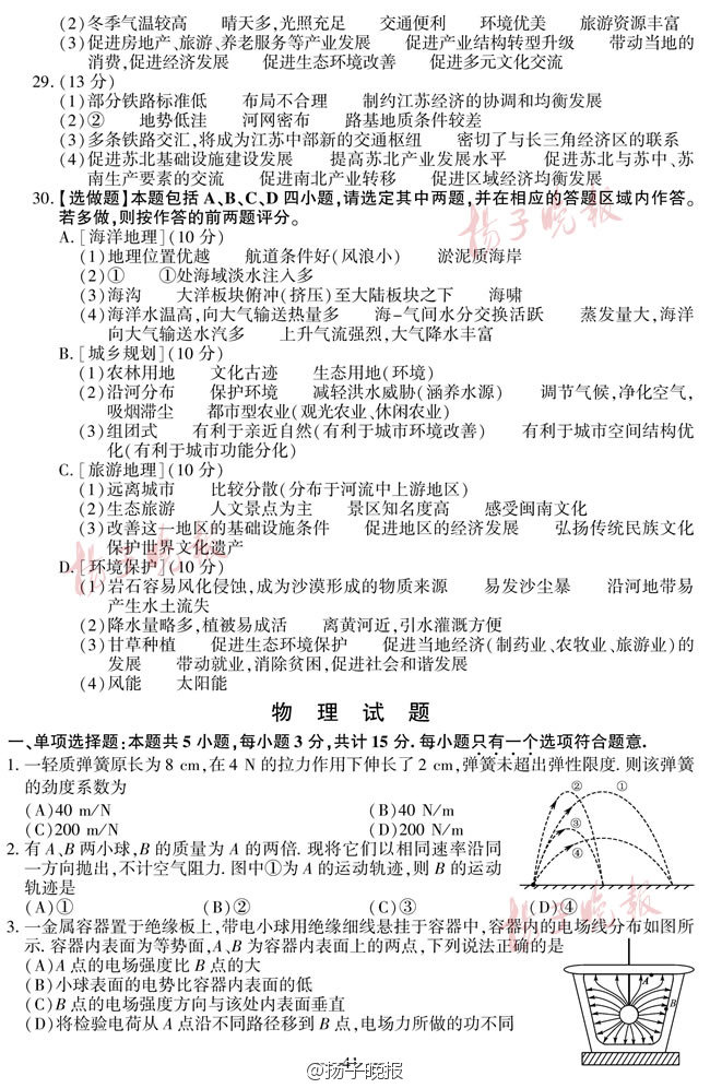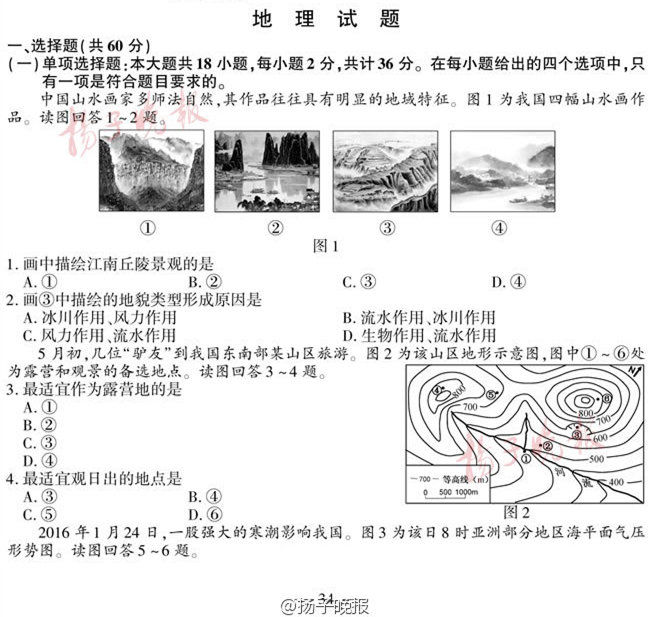 【2016年江苏高考试卷及答案——地理】高考小伙伴来对答案啦!其他小伙伴也来看看,这些题你会做吗?