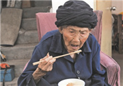 从苦日子里走过来的老人总是头戴蓝色头帕、一身粗布衣服打扮,也不爱后辈给自己做新衣服。饮食上,老人喜欢吃粗粮,早上能吃一两稀饭,中午和下午都能吃2两最爱的回锅肉。“一天三顿必须有回锅肉,而且主要是肥肉,心情好的时候,一小碗回锅肉她一天就吃完了。”因为装有假牙,平时,儿孙们递小半边苹果或梨给付素清,她也能慢慢地吃完,“水果主要喜欢吃脆桃子和葡萄,有时候还要吃点花生,比较喜欢生花生。”